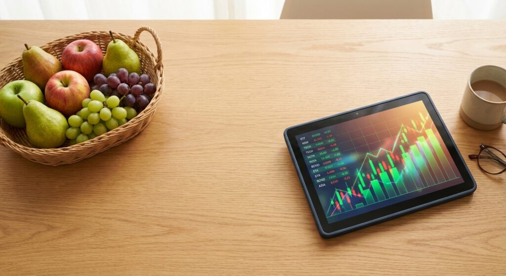 과일 바구니를 떠올려보시면 쉽습니다. 사과, 배, 포도를 각각 사는 대신 과일 세트를 통째로 사는 것과 같습니다. ETF 1주만 사도 그 안에 담긴 수십 개, 수백 개의 주식에 한 번에 투자하는 효과가 있습니다.