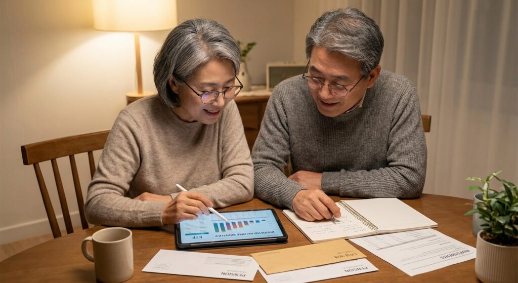 배당을 주는 ETF를 추가하면 은퇴 후 생활비로 활용할 수 있습니다. 월 배당을 주는 채권 ETF나 고배당주 ETF를 조합하면 매달 일정한 현금 흐름을 만들 수 있습니다.